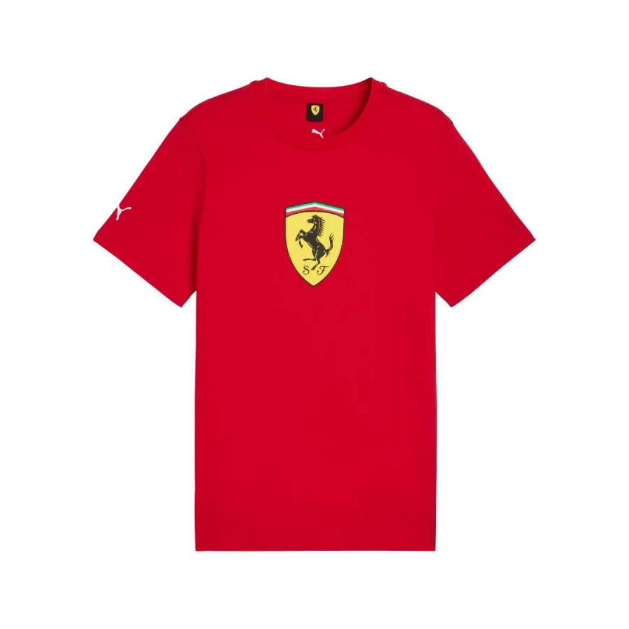 Toto červené tričko s krátkým rukávem od Ferrari z kolekce Ferrari Sportswear, které je absolutním symbolem automobilové vášně, ztělesňuje samotnou podstatu Scuderia Ferrari v oděvu, který je zároveň vysoce výkonný a zaměřený na životní styl. Jeho ikonická barva, přímo inspirovaná závodními vozy, potvrzuje silné spojení se světem soutěží a závodním dědictvím značky Prancing Horse. Toto tričko s krátkým rukávem, navržené tak, aby doplňovalo dynamický životní styl, kombinuje pohodlí a volnost pohybu díky svému prémiovému jednodílnému střihu. Směs bavlny a recyklované bavlny nabízí měkký pocit na pokožce, vynikající prodyšnost a odolnost, ideální pro každodenní nošení, ať už na trati nebo ve městě. Toto červené tričko Ferrari, navržené pro ty, kteří žijí a dýchají F1, se bez problémů hodí do moderního šatníku pro motorsport a kombinuje sportovní eleganci, funkčnost a silnou vizuální identitu, která je charakteristickým znakem Scuderia Ferrari.